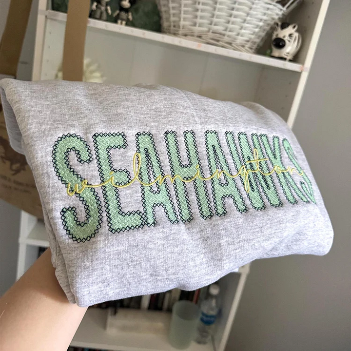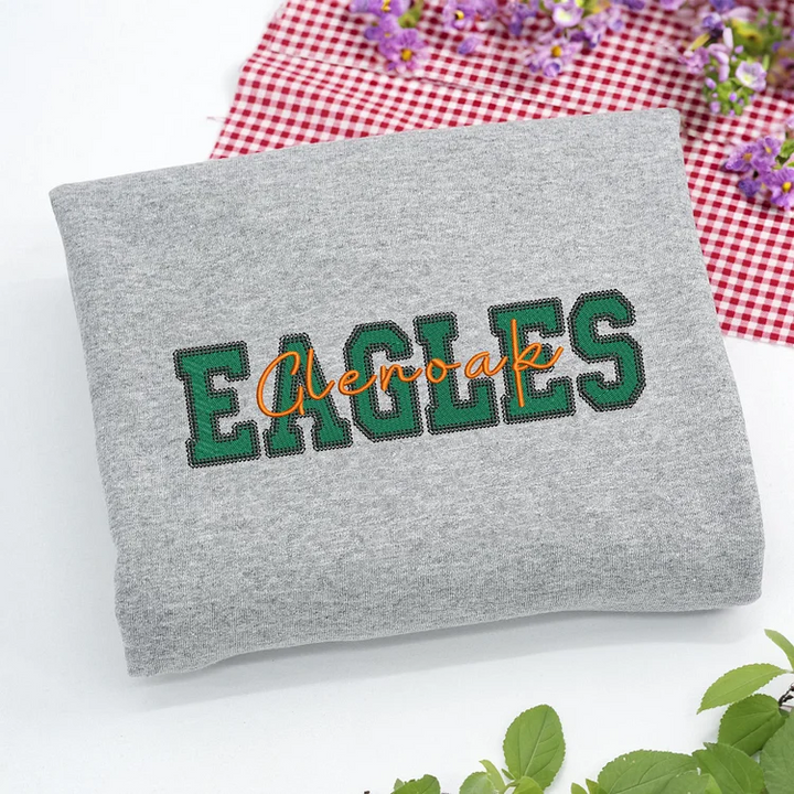 🧵 Personalized embroidered college shirt with custom school mascot 🎓. Ideal game day shirt 🏈, high school spirit wear, or university football team merch. A cozy embroidered shirt, perfect for students, sorority sisters, fraternity brothers, alumni, athletes, or parents showing team pride 🙌. Makes a unique back-to-school outfit, graduation gift 🎉, or college game day gift 🎁 for school pride fans.