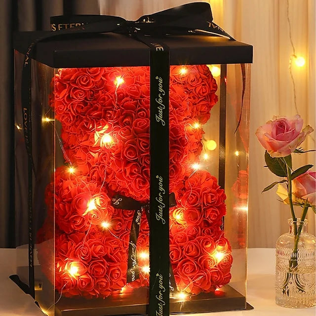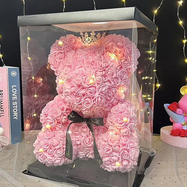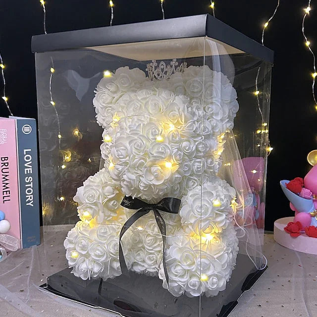 Rose Bear Artificial Foam Flowers with LED Light & Gift Box – A Thoughtful Romantic Gift